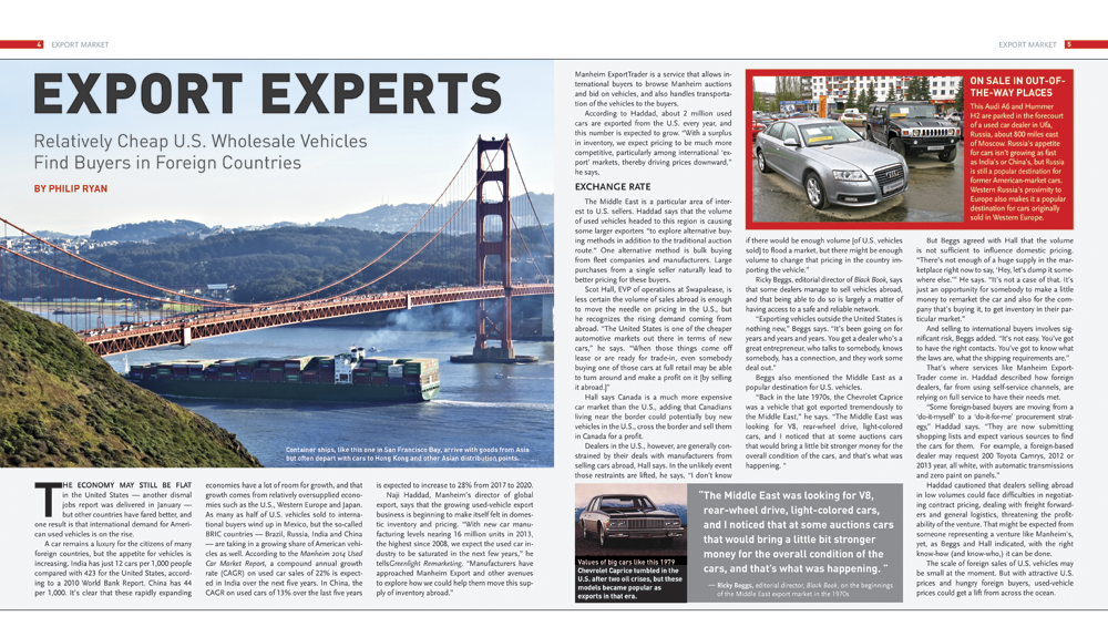 GreenLight:Remarketing, published quarterly, is a publication focused on relaying news and trends about vehicle remarketing, pricing, and financing to a select group of financiers and dealers. Originally published on behalf of Drive Financial, the magazine has undergone two major style overhauls since its first issue in the Spring of 2008. The first, in 2010, coincided with the change in branding from Drive Financial to Santander Consumer Finance USA. The second, in 2013, was a less dramatic change and only a freshening of the look – done in concert with designers at Santander – seen here. In addition to providing all of the visual content, I am also an editorial contributor – writing the headlines, the captions, and sometimes full sidebars and additional secondary content for features. For this issue, the feature revolved around the exporting of used cars from the United States to other countries – hence the appearance of the Shanghai skyline and Pudong area in the background of the cover. |