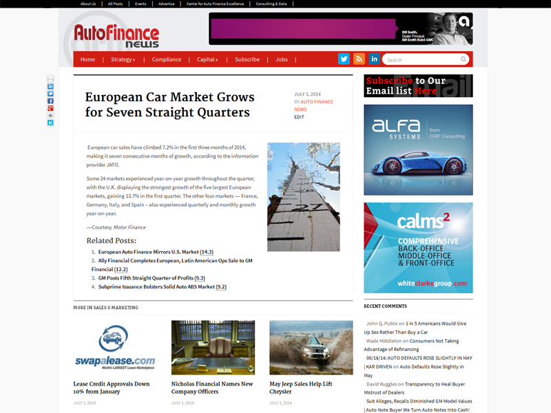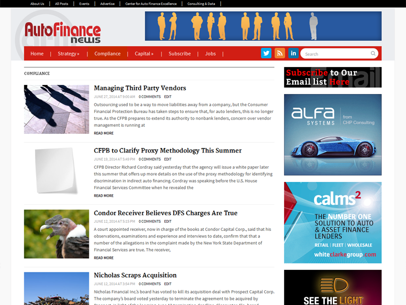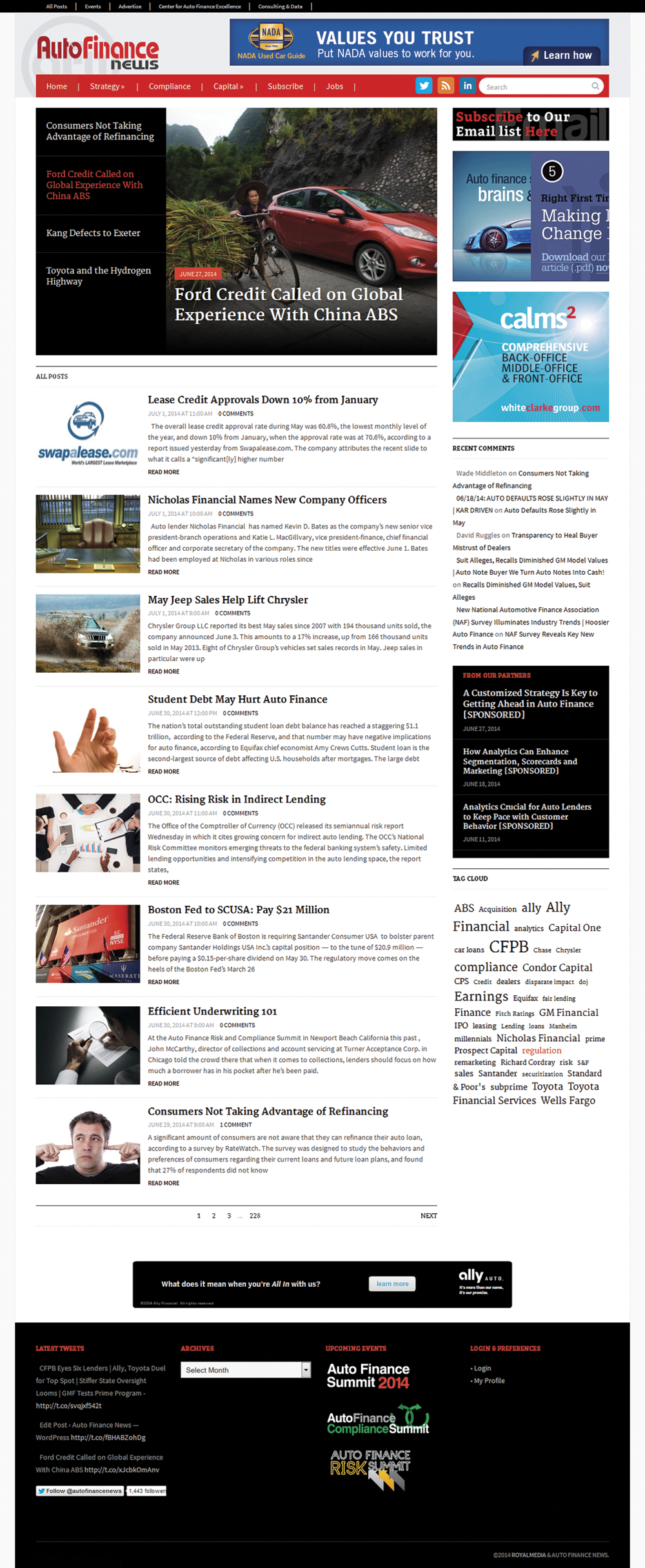 Originally a cross between a blog and a more forum-oriented site, AutoFinanceNews.net evolved into a more conventional news site in 2014 using WordPress as a base for a content management system that the entire editorial team could easily use. The goal was to present a clean and easy-to-navigate user experience where subscribers and casual readers could access the information they’re seeking in a more user-friendly and contemporary format – as well as carrying over the legacy content from NING (quite a challenge).