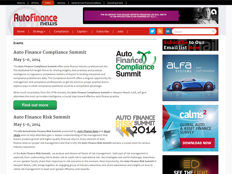 AutoFinanceNews.net is the premier online Auto Finance professional network. It is the online companion to the publication Auto Finance News – the leading periodical on the Auto Finance industry. AutoFinanceNews.net was created in 2009 on a customized NING Social Network platform (au courant at the time) and has enjoyed a loyal and strong audience ever since.